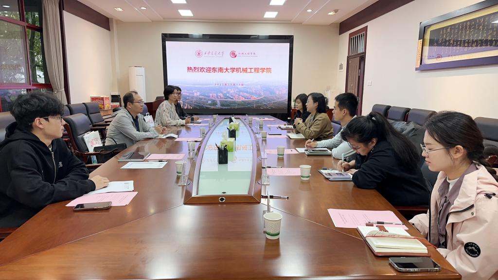 2025年10月11日14时30分,东南大学机械工程学院党委副书记彭龙带领学工队伍一行莅临西安交通大学机械工程学院,开展学生工作调研与交流。我院党委副书记张敏、学院辅导员李东阳、任欣、孟亚云、雷杨浩,以及文治书院辅导员叶倩等7人共同参与座谈。会议在兴庆校区机械工程学院第一会议室举行,由张敏副书记主持。