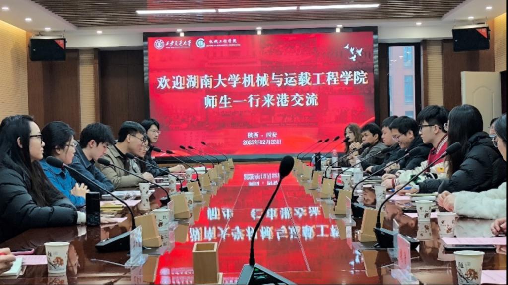 为深化校际共青团工作交流,2025年12月22日,湖南大学机械与运载工程学院团委师生代表团在团委书记黄敏老师的带领下,莅临西安交通大学创新港校区机械工程学院开展参观交流活动。西安交通大学机械工程学院团委副书记雷杨浩、孟亚云,团委学生副书记及学院学生骨干代表热情接待了来访师生,双方在西安交通大学创新港校区2号巨构第一会议室举行专题座谈会。