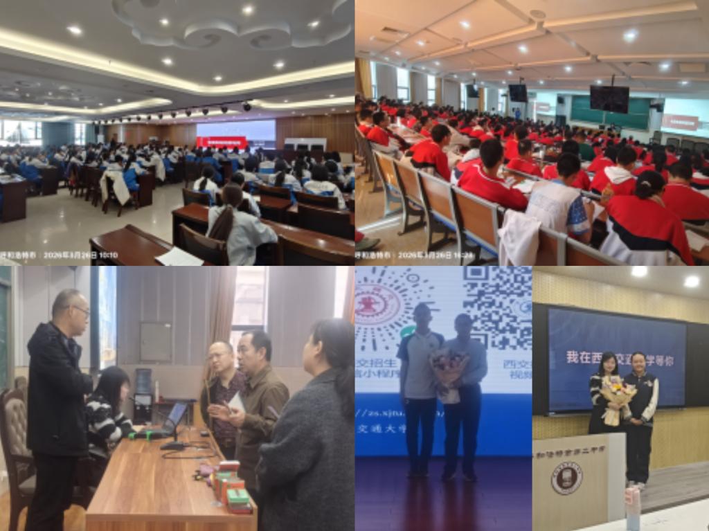 3月23日至26日,西安交通大学机械工程学院内蒙古招生组在包头市、呼和浩特市开展招生宣讲活动。徐亮教授、任欣副教授与内蒙古招生专员张群明老师分别走进当地重点中学,通过科普讲座、招生政策解读等形式,向师生及家长介绍西安交通大学的学科优势、人才培养特色以及招生政策,助力优秀学子深入了解交大,激发科学报国志向。