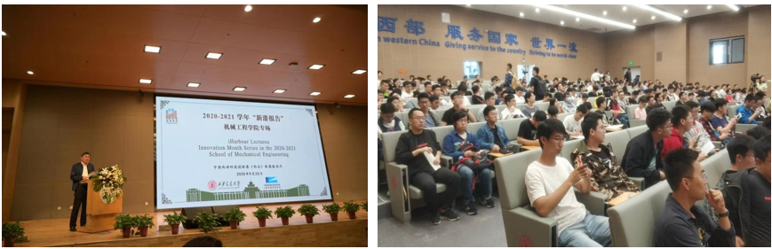 9月25日下午,"新港报告"科创月系列机械工程学院专场在中国西部科技创新港新港报告厅举行。本次专场邀请了北京航空航天大学的严亮教授和西南交通大学靳忠民教授作为主讲人,会议由高端装备研究院国际机械中心执行主任严如强教授主持,到场师生700余人。