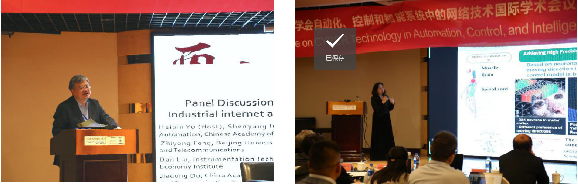10月11日上午,会议开幕式由大会主席张小栋教授主持,西安交通大学国际学院常务副院长温广瑞教授宣读了西安交通大学校党委常委、校长助理洪军教授的大会致辞,IEEE RAS前副主席、中国科学院沈阳自动化所刘连庆研究员,以及中国振动工程学会动态测试专业委员会主任委员、浙江大学杨世锡教授分别代表组办单位致贺词。随后,会议举办了一场专题讨论会和三场大会报告。专题讨论会主题为“Industrial internet and 5G ”,由中国科学院沈阳自动化研究所于海斌所长主持,北京邮电大学冯志勇教授、机械工业仪器仪表综合技术与经济研究所刘丹工程师以及中国信息与通信技术研究院杜加懂副主任参与了该专题讨论:“从工业自动化发展的需求,给出了5G和工业互联网的概念、内涵及技术应用的新见解”。三场大会报告包括:中国科学院自动化研究所乔红教授就“Brain-inspired robotic vision, strategy and system”作的主题报告:“展示其团队在类脑智能领域的研究成果,分析人的认知活动的神经生理学原理,并从人的认知活动出发设计模拟神经系统,提出仿生感知和认知模型等”,以及深圳市智能机器人研究院张启毅研究员就“Industrial Robot Control: Evolutional Advancement and Proposed Trend”作专题报告:“介绍典型工业机器人的工作性能、控制算法等,并预测工业机器人的发展趋势”和美国佐治亚理工大学陈义华教授就“Fuzzy Dynamical Systems (FDS): Origin and Development”作专题报告:“给出模糊动态系统研究的起源和基本理论,展示最新的研究成果”。