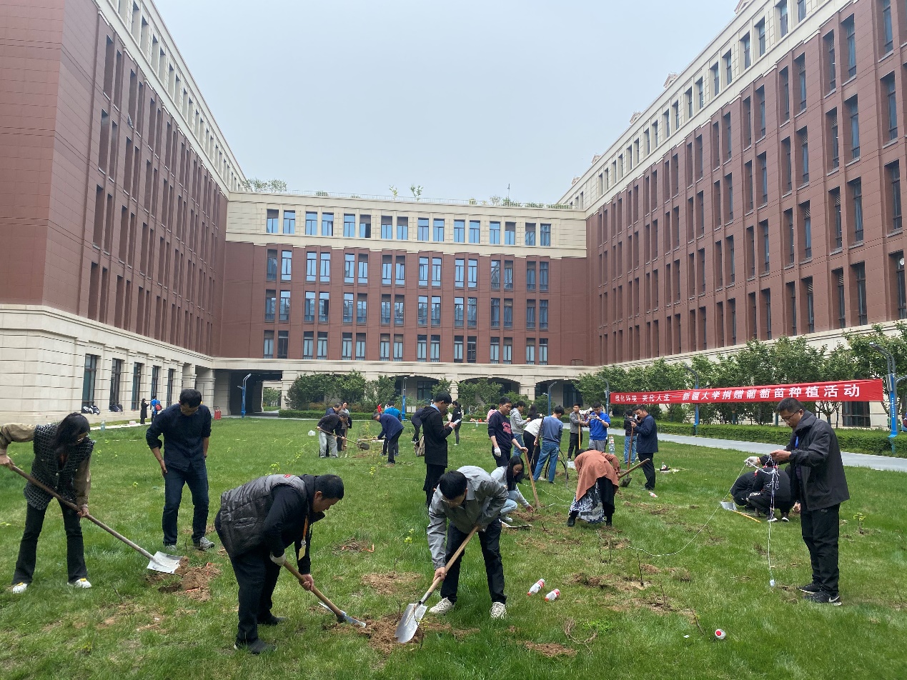 新疆葡萄名远扬,高端院内满园香。种植活动伊始,学院工会副主席李云龙老师致辞,向大家介绍了葡萄苗的由来,以及我院与新疆大学的深厚友谊。随后,丁立库、杨江坤、苏宇三位老师讲解葡萄苗种植要点,叮嘱大家“一定要挖30厘米见方的坑,这样葡萄苗成活率才高”,并组织师生列队分组、划分区域、领取工具。葡萄种植过程中,大家严格要求,拉线取直,精准测量……2个小时的劳动,大家干得热火朝天。