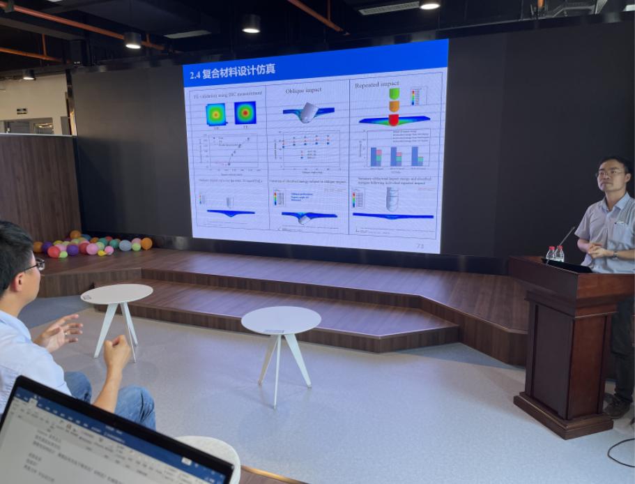 中心周晋教授做了题为“航空复合材料轻量化结构设计制造”的汇报。周晋教授,是国家青年特聘教授、博士生导师、利物浦大学荣誉研究员(Honorary Research Fellow),发表SCI期刊论文30余篇。博士毕业于英国利物浦大学,先后在剑桥大学、英国帝国理工从事航空复合材料冲击动力学、轻量化结构设计优化、先进制造及快速成型理论等方向研究工作。承担英国EPSRC学术课题及工程项目10多项,主要成果发表于Composites Science and Technology、Composite Structures、Composite Part B等复合材料领域知名期刊,在商用客机轻量化抗冲击吸能结构及快速成型制造方面获工程应用。目前承担国家自然科学基金及航空航天等学术及工程课题6项,研究内容包括轻航空抗冲动力学、轻量化吸能结构、夹心结构、层合板结构、可变性折叠结构、复合材料修复及链接、柔性复合材料、储能功能复合材料、多尺度有限元仿真、深度学习等课题。