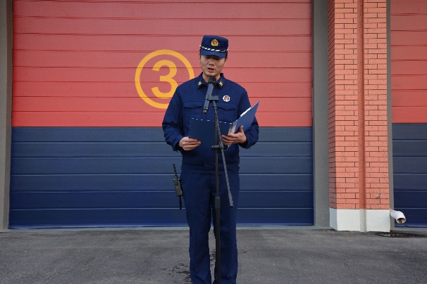 张新功做总结发言,他向创新港消防站对此次活动的大力支持表示感谢。他表示,安全无小事,防范在日常,同学们今天来到创新港消防站参观学习,首先就是要学习消防安全知识,通过今天的学习,要对照标准和要求,对自己的宿舍、工位、实验室来一次安全大排查,确保自己和周围师生的安全;其次是要学习消防指战员良好的内务,时刻保持自己生活和学习环境的干净整洁;最后,希望大家当好宣传员,向周围老师同学宣传我们今天学到的知识,成为一名消防安全的传播者。