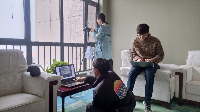 图5 机械研会玖宫格工作室在涵英楼进行直播录制