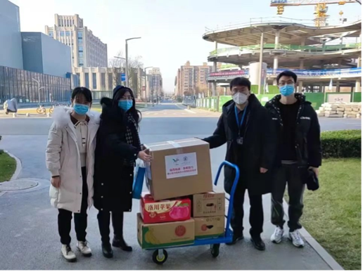 此外在2022新年当天,志愿者不辞辛苦,从记录、分类、搬运到为学院所有学生将物资分发到位,毫无怨言,同学们在领取过程中也注意防护,听从指挥。