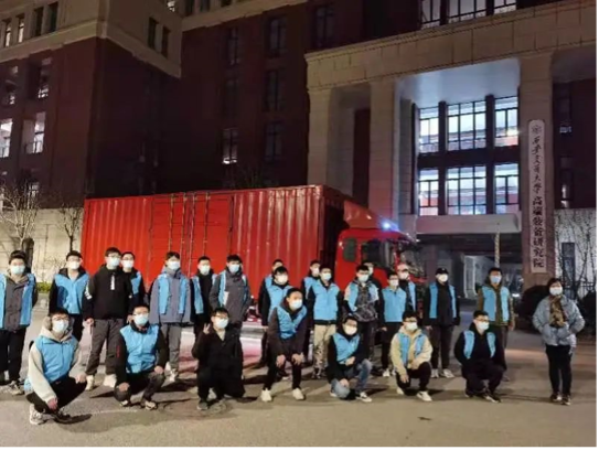 在2022年到来之际,为了尽快将抗疫物资发放至同学们手中,学院召集志愿者连夜搬运,同学们踊跃报名,意在为抗击疫情出一份力。大家快而不乱,有序分装物资,在12月31日晚十点所有物资搬运完成,为后续发放工作做好了充足的准备。