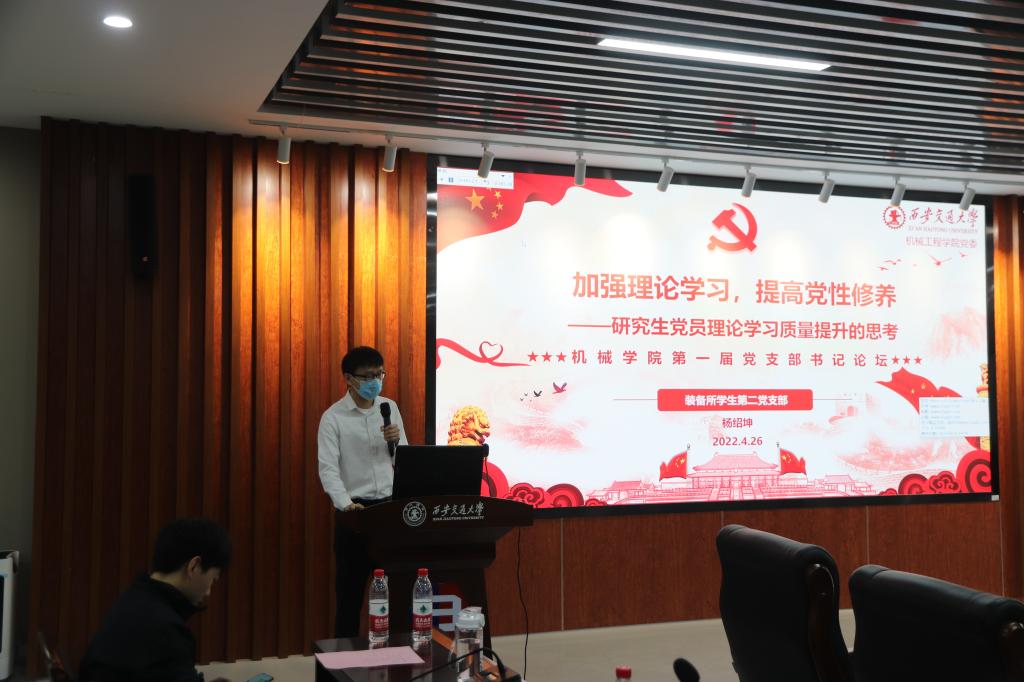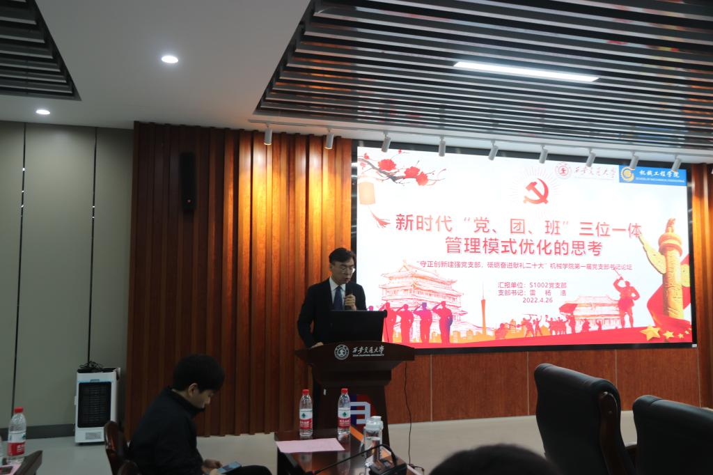 为深入学习宣传贯彻落实新时代中国特色社会主义思想,常态化长效化开展党史学习教育,增加历史自信、增进团结统一、增强斗争精神,以优异的成绩献礼党的二十大,传承弘扬西迁精神,高扬“四面旗帜”,进一步挖掘和凝练基层党组织建设中的好经验、好做法,加强经验交流、集思广益破解工作中遇到的困难和问题,切实加强研究生党支部书记队伍建设,扎实提升党建创新工作水平,充分发挥党支部的战斗堡垒作用,4月26日下午14:30,机械工程学院第一届党支部书记论坛在创新港二号巨构2-5008会议室举行。