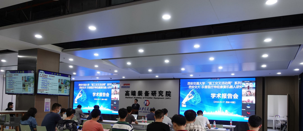 会议由西安交大——乐普医疗神经康复机器人研究院组织召开,西安交通大学科研院专项和开发处副处长李小虎教授主持,西安交通大学高端装备研究院机器人与智能系统研究所副所长张小栋教授致辞。邦勤资本总经理、西安交大——乐普医疗神经康复机器人研究院理事刘明宇博士,西安红会医院副院长许鹏教授,新加坡国立大学康复机器人专家喻豪勇教授,广州医科大学附属第五医院林强博士,西安交通大学副教授、西安交大—乐普医疗神经康复机器人研究院院长王晶作为演讲嘉宾进行了报告分享,共同探讨康复机器人、脑机接口等前沿技术在神经康复中的临床价值及应用前景。