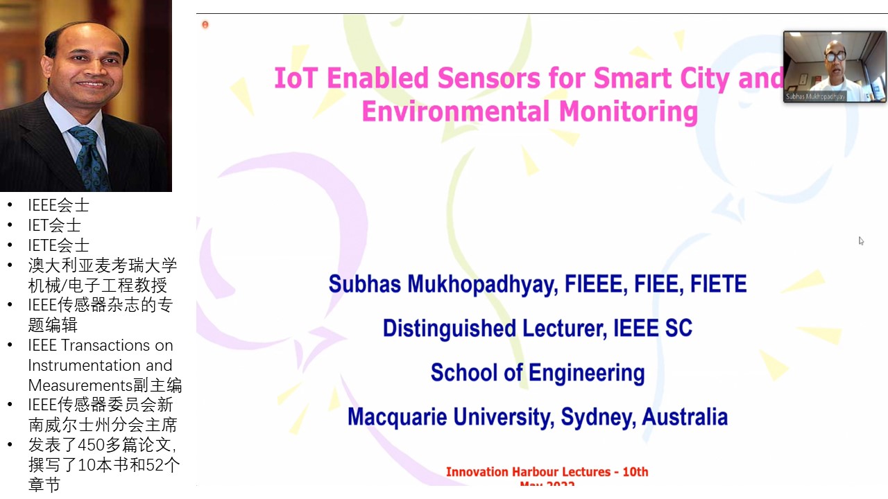 Subhas Chandra Mukhopadhyay教授做了题为“IoT Enabled Sensors for Smart City and Environmental Monitoring”学术报告,详细讨论了物联网传感器、柔性传感器的制造和开发过程,以及在城市、家庭、健康和环境监测等方面的应用。