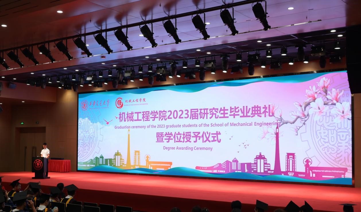 2023年7月2日上午,西安交通大学机械工程学院2023年研究生毕业典礼暨学位授予仪式,在中国西部科技创新港涵英楼东辅楼千人报告厅举行。机械工程学院党委书记王朝晖教授,机械工程学院副院长周光辉教授,机械学院党委副书记张敏老师,机械工程学院温广瑞教授以及2023届毕业研究生参加了活动。机械学院辅导员李东阳老师主持毕业典礼。