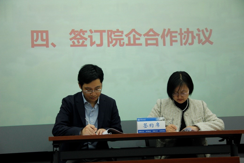 张敏和毛为喆分别代表机械工程学院、索辰科技签订院企合作协议。在前期充分沟通下,索辰科技支持机械工程学院开展学生科创竞赛和社会实践活动。