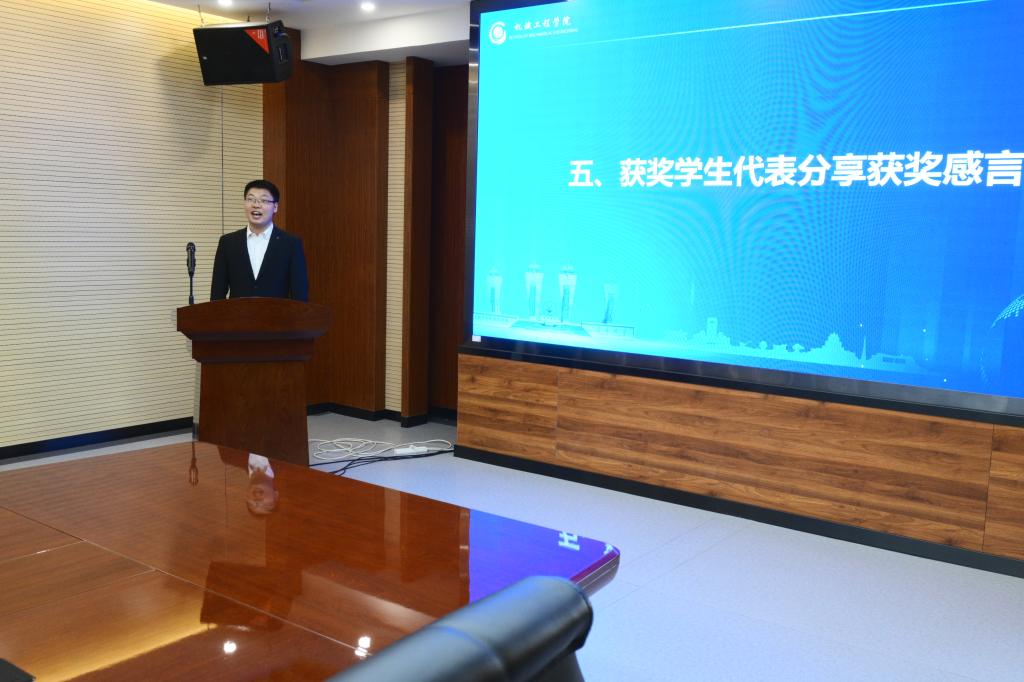 博士研究生余德文代表获奖学生发言,表达了对母校、导师洪军教授以及恩斯克公司的感谢之情。感谢学院厚植成长成才沃土,搭建产教融合平台,感谢现代设计及转子轴承系统教育部重点实验室。表示将持续调研真情况,发掘真问题,解决真需求,不断擦亮“设计科学、工程摩擦学、轴承转子、智能运维”四大名片。