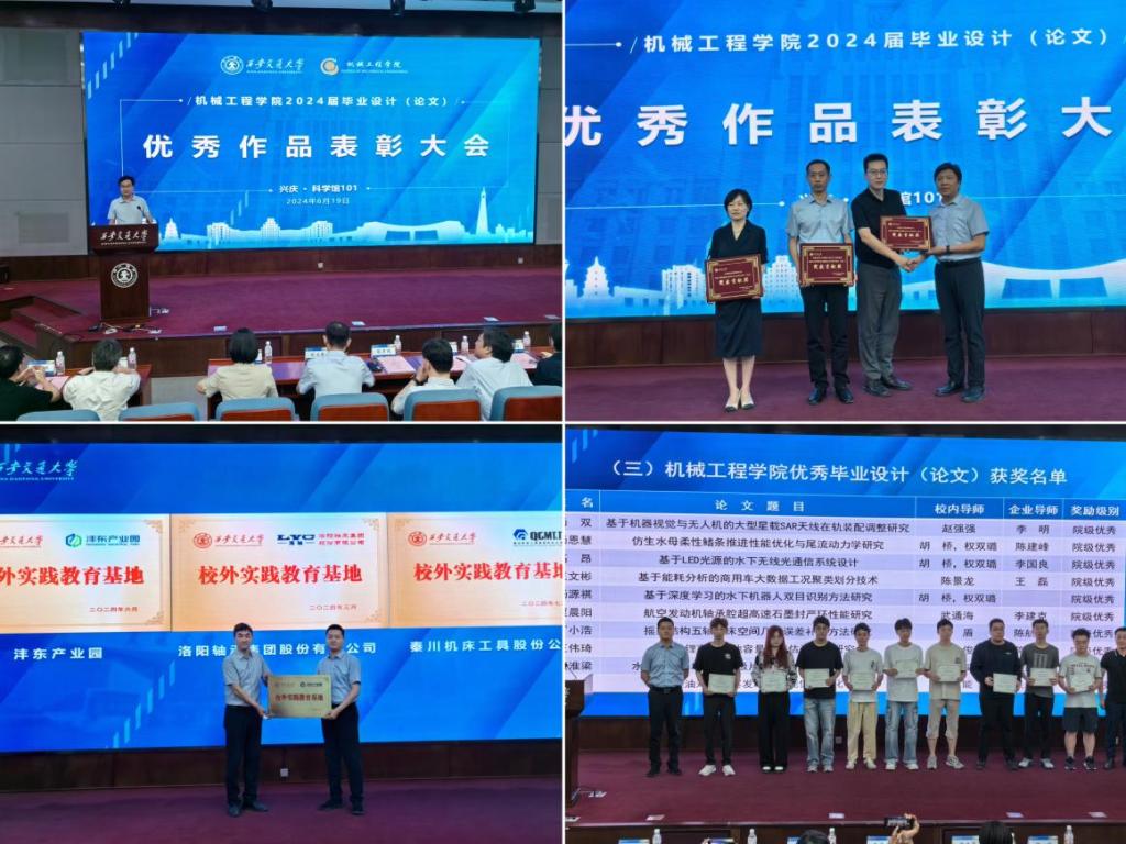 近日,机械工程学院2024届本科毕业设计(论文)优秀作品表彰大会暨优秀作品展圆满落幕。经过严格评审,共评选出校级优秀毕业设计(论文)4篇,院级优秀毕业设计(论文)32篇,以及校企合作特别奖励作品2篇。涵盖4个本科专业,由12个基层单位推荐的95篇(件)本科毕业设计(论文)作品进行了校园陈展,其中特别展出了具有代表性的25篇校企合作毕业设计作品,是对机械学院毕业设计(论文)环节教学质量以及校企合作育人成效的一次集中考查与展示。