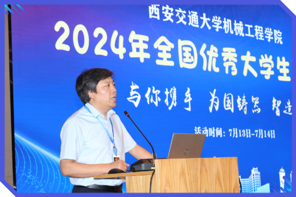 周光辉全面介绍了机械工程学院的历史沿革、学科声誉、人才培养、师资队伍、科学研究、平台建设等方面的具体情况,强调学院始终以建设制造强国为己任,全力打造核心技术攻关与创新人才培养基地,为制造强国的建设贡献了交大力量。同时欢迎各位同学加入西安交大机械工程学院,共创美好未来,也祝愿大家本次夏令营之旅收获满满。