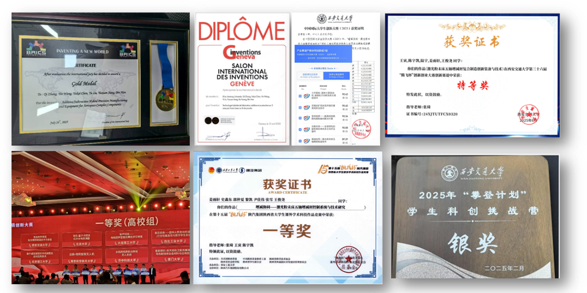 围绕装备和技术研发,王寅共发表学术/会议论文10篇,其中以第一作者发表6篇(中科院一区3篇),在IJEM、Addit. Manuf.、Robot. Cim-Int Manuf.等1区TOP期刊发表论文6篇;申请国家发明专利17项(授权11项),以学生一作授权6项,登记软件著作权1项;带领团队积极参加国内外赛事,获金砖国家发明奖金奖、中国国际大学生创新大赛国家级金奖、新域新质创新大赛(工信部)一等奖等8项荣誉。