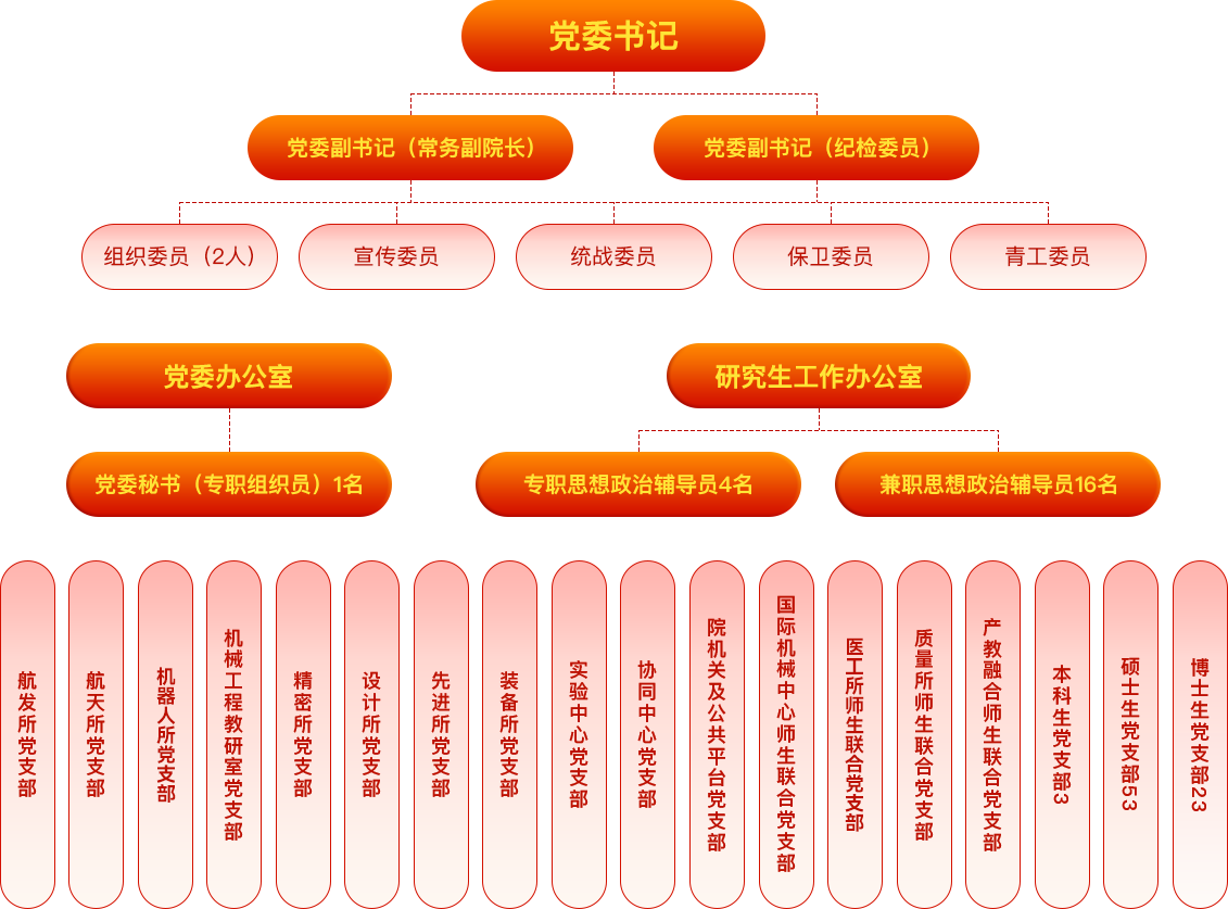 机械工程学院党委始终坚持“党的一切工作到支部”原则,对标“七个有力”建强党支部。2018年,学院党委结合新的基层学术组织架构重组师生党支部。截至2025年4月30日,学院党委有95个党支部,其中包含11个教师党支部、4个师生联合党支部和80个学生党支部,共计1700余名(含预备)党员。