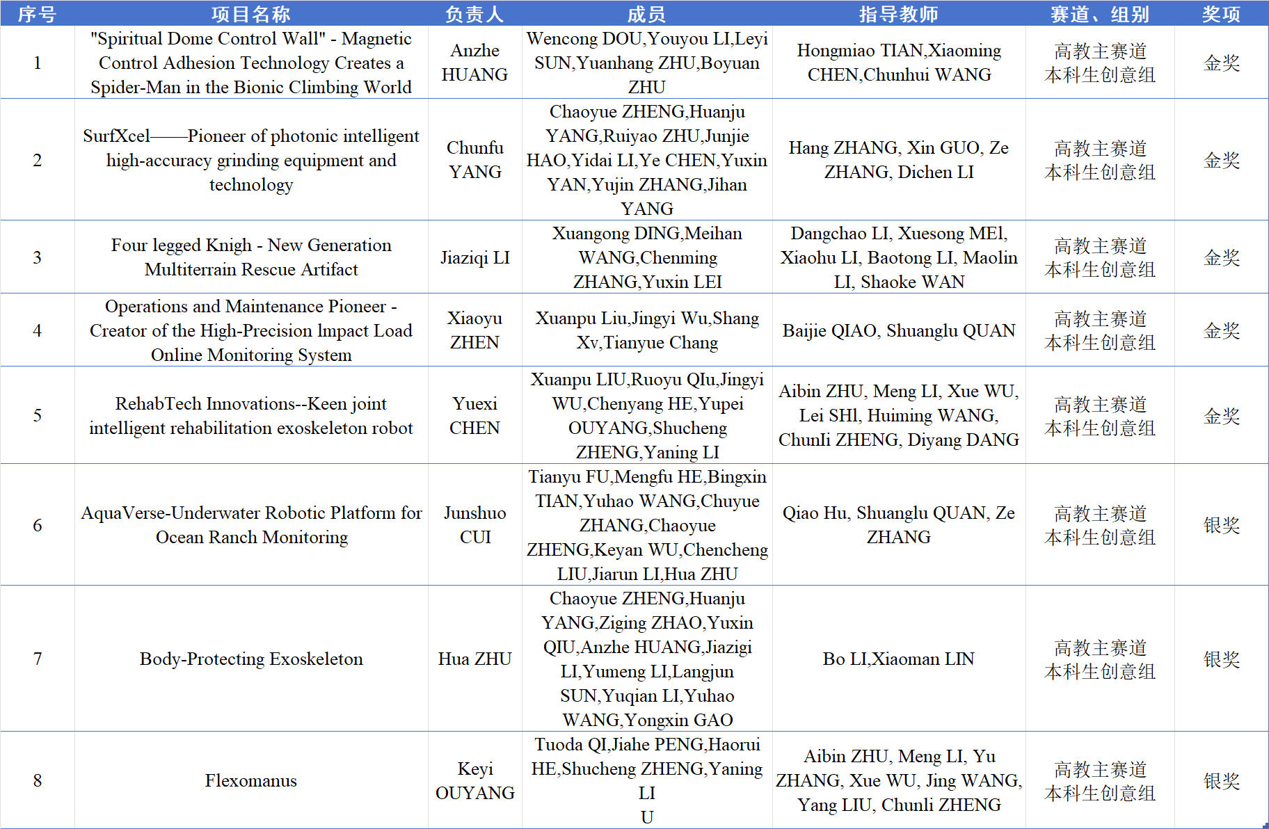 10月12日至15日,由教育部等11个部门联合河南省人民政府主办的中国国际大学生创新大赛(2025)全国总决赛在郑州举行。在本次竞赛中,机械工程学院参赛学子披荆斩棘,不负众望,分别荣获金奖3项,银奖1项,国际项目金奖5项,银奖3项。其中,主体赛金奖1项、银奖1项;产业赛道金奖2项。机械学子以先锋姿态,在科研创新和创业实践的广阔天地中奋勇开拓,展现了新时代青年肩负历史使命、引领未来发展的非凡潜力和责任担当。
