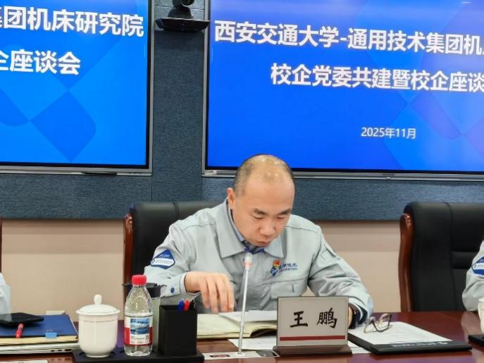 2025年11月5日上午,西安交通大学-通用技术集团机床研究院校企党委共建暨校企座谈会在通用技术集团机床研究院望京办公区成功举行。本次会议以理论联学与座谈交流相结合的形式,旨在深化校企合作,共谋产教融合新篇章,协力推动高端制造业高质量发展。西安交通大学机械工程学院、国家卓越工程师学院师生代表,与通用技术集团机床研究院相关负责人及在企实践学生共同参会。会议由机床研究院党群人力部副部长雷显龙主持。