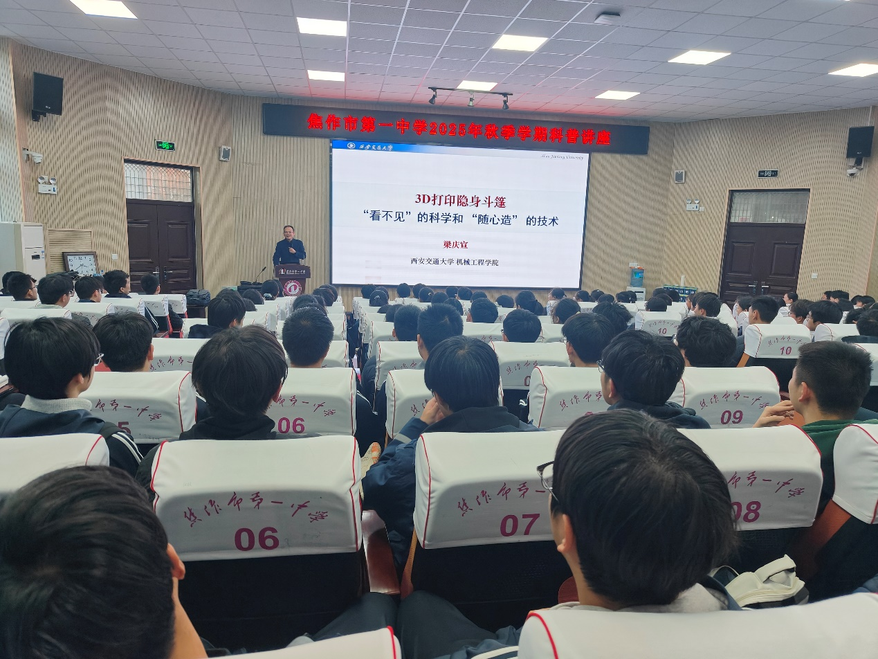 为做好大中教育衔接,进一步激发广大中学生的科技兴趣和热情,2025年11月18-20日,机械工程学院教授、博士生导师,陕西省杰出青年基金获得者,陕西省快速制造工程技术研究中心副主任梁庆宣先后走进郑州外国语新枫杨学校、焦作市第一中学、沁阳市第一中学、河南省济源第一中学,开展交流与科普讲座活动,为四校师生及济源市中小学科学教师带来了一场前沿科技盛宴。